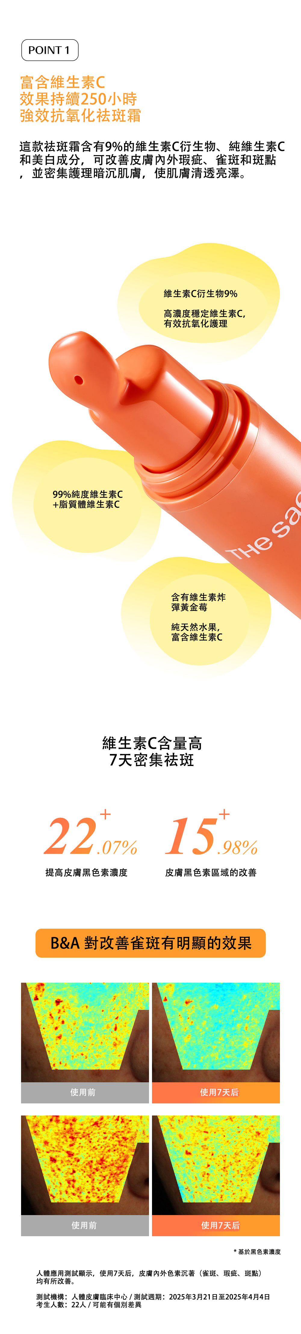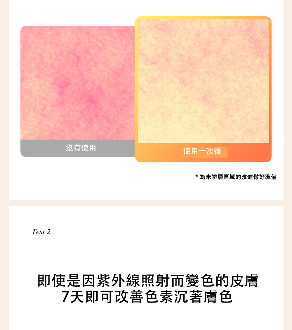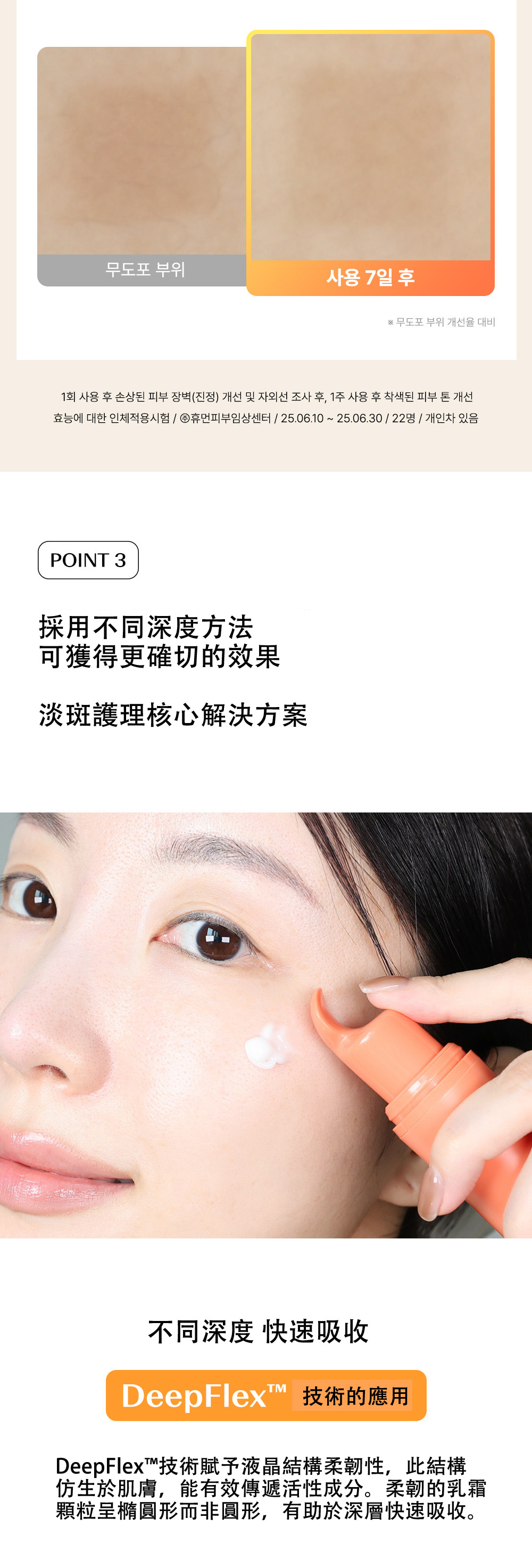 - 臨床實證7天內可見色素沉澱改善22.07%