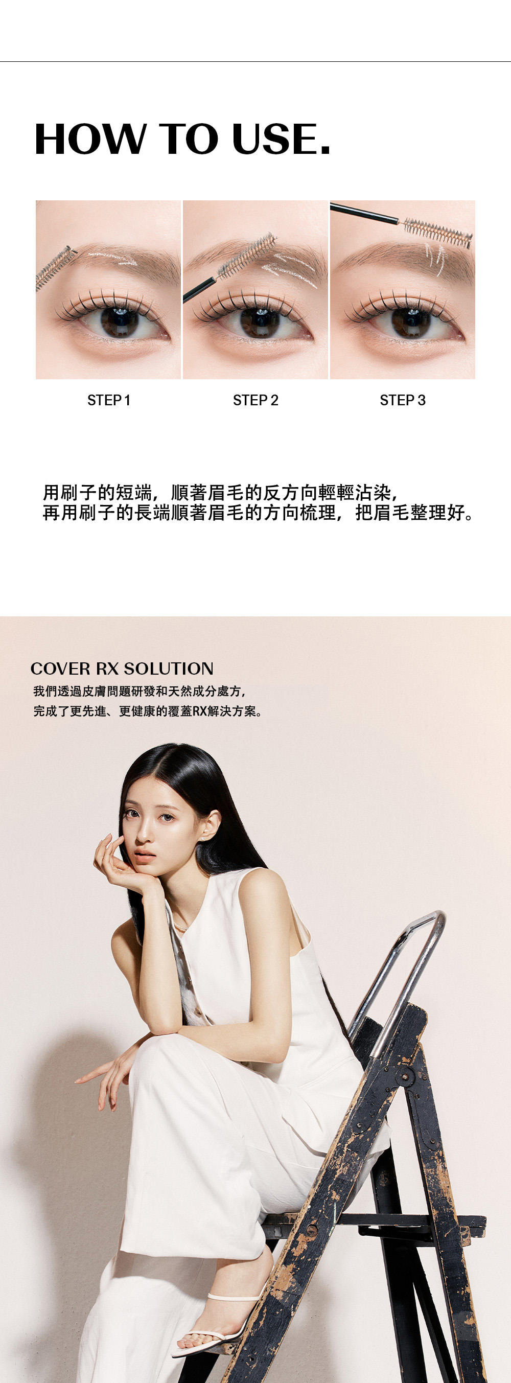 完美遮瑕眉膏 Cover Perfection Brow Concealer **產品成份** - 採用溫和天然的成分配方,專為敏感的眼周肌膚設計。 - 配方通過皮膚刷眼部測試,確保使用安全,降低刺激風險。 - 內含獨特成分,使其具備不結塊、貼膚且易於清洗的質地。 **產品功效** - 卓越遮瑕: 能有效遮蓋原有眉色,甚至是漂白後的淺色眉毛,為重新塑造眉形打造完美畫布。 - 持久著色: 提供鮮明的色彩遮蓋力,使新畫上的眉色持久亮麗,不易脫落或硬化。 - 精緻眉妝: 集遮瑕與著色於一體,能輕鬆打造輪廓鮮明、整潔精準的專業級眉妝。 **產品特點** - 創新雙層刷頭: 採用不同長度的雙層羊毛刷頭,短毛端用於精準遮瑕上色,長毛端用於梳理眉毛,令妝感更自然。 - 獨特不結塊質地: 黏稠貼服的質地,即使重複疊加使用也不會結塊,確保妝容整潔乾淨。 - 持久易清洗: 色彩持久不脫落,同時只需一般潔面產品即可輕鬆溫和地卸除,無需用力揉搓。 - 專為眉毛設計: 針對眉毛附著性優化,能使眉粉等後續產品更牢固地附著,提升整體妝效。 **使用方法** 步驟1:遮瑕上色 使用刷頭的短毛端,蘸取適量遮瑕膏,逆著眉毛生長方向輕輕塗抹,均勻遮蓋原有眉色與皮膚瑕疵。 步驟2:等待融合 稍作等待,讓遮瑕膏與膚色自然融合,並進行著色。 步驟3:梳理定型 使用刷頭的長毛端,順著眉毛生長方向輕輕梳理,將眉毛整理整齊,並帶走多餘膏體,打造自然精緻的眉形。 容量:4g